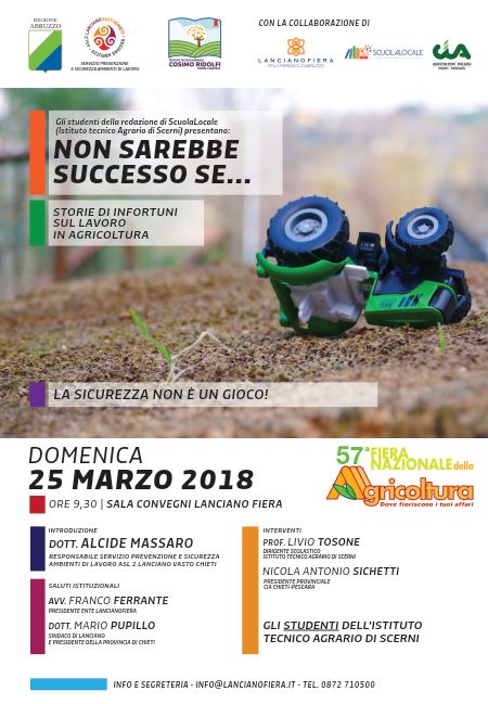 Gli studenti dell’Istituto Agrario saranno protagonisti, con un video e testimonianze, al convegno “Storie di infortuni sul lavoro in agricoltura” c/o la sala convegni alla Fiera dell’Agricoltura, domenica 25 marzo 2018 alle ore 9,30.